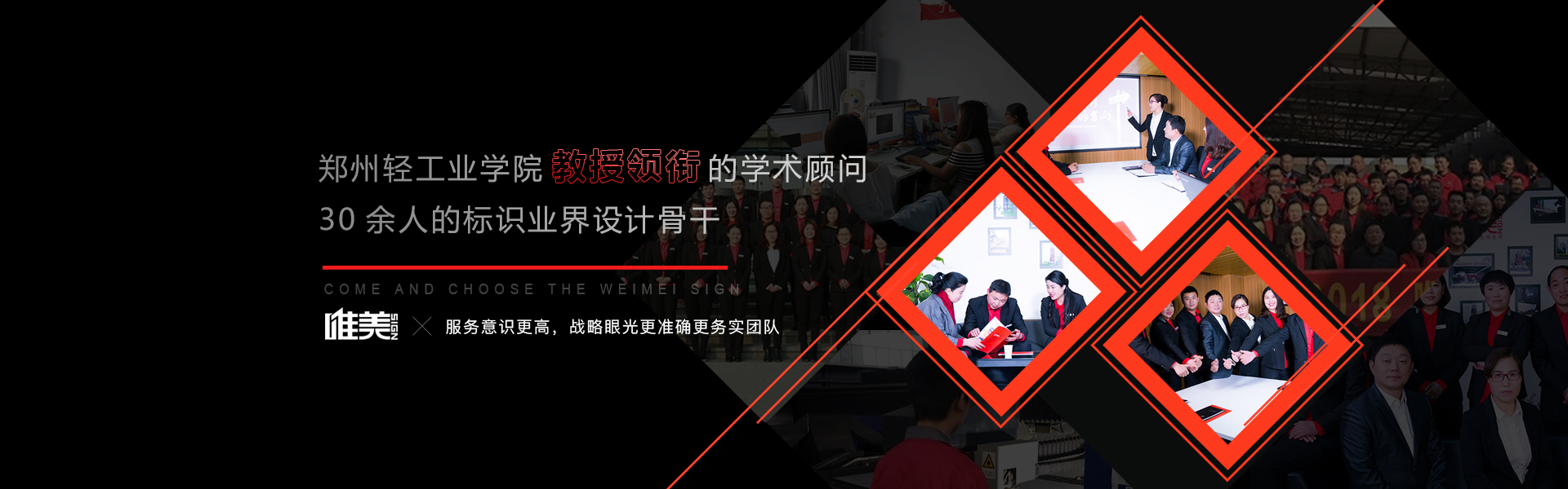 鄭州唯美標(biāo)識設(shè)計制作公司擁有21000平方現(xiàn)代化生產(chǎn)車間、多臺先進設(shè)備、100多名技工團隊、12位資深設(shè)計師團隊,嚴遵19道制作工序和6S管理體系,成功服務(wù)2800多個標(biāo)識項目,3...
